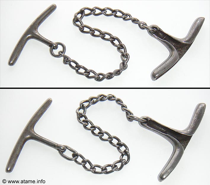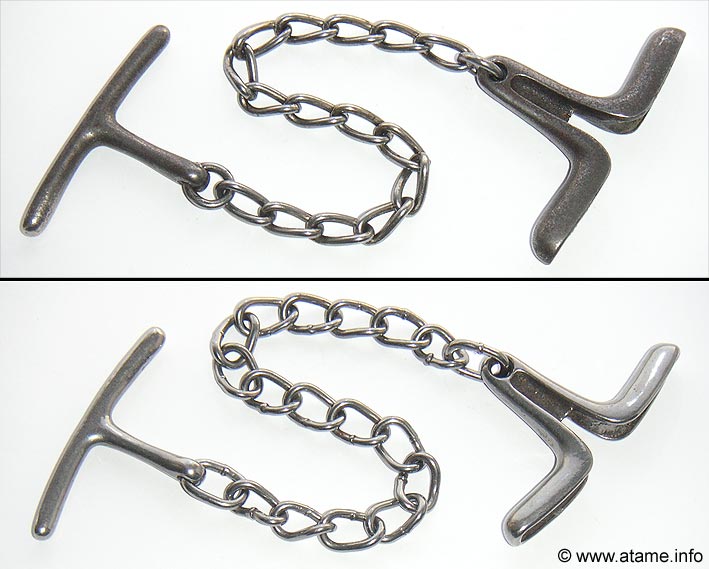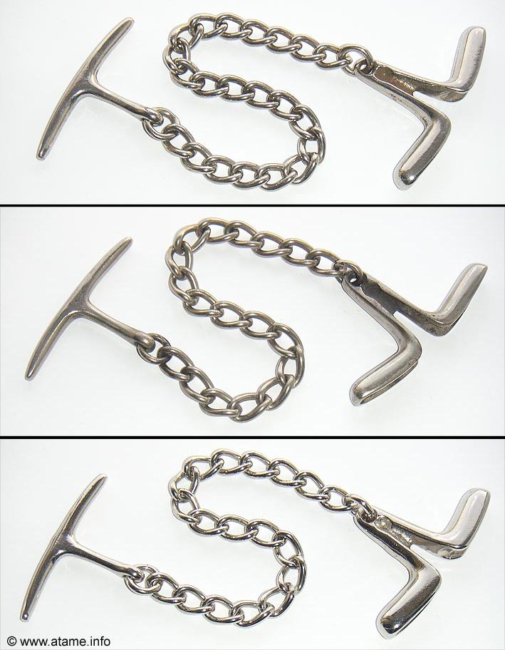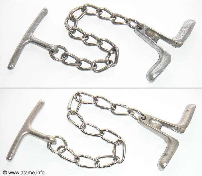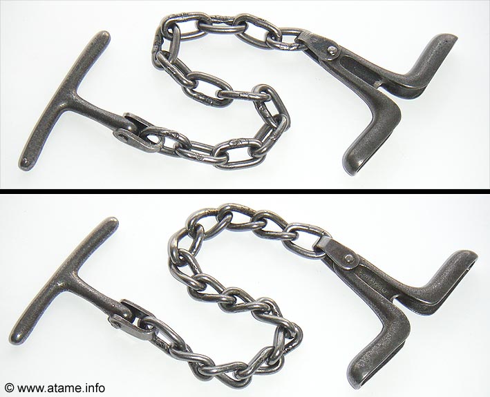 Kette, Griffe und Befestigungen der Kette an den Griffen. Gemeinsam haben