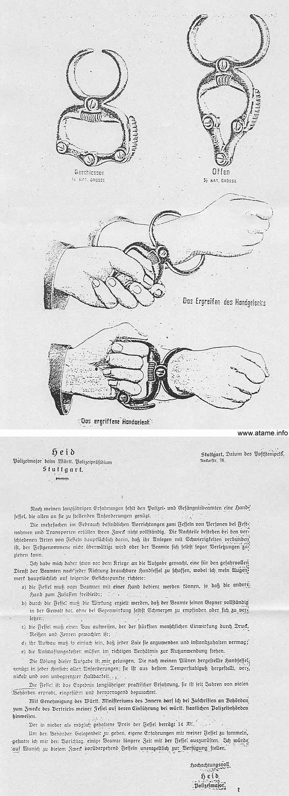 zwölf Jahre zuvor die erste Handschelle mit Durchschlag, welche nun