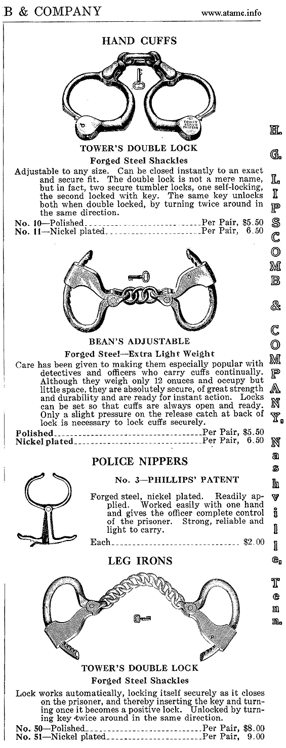 (oder Tower Bean's Pattern) Handschellen (Patent 1899) angelegt, obwohl